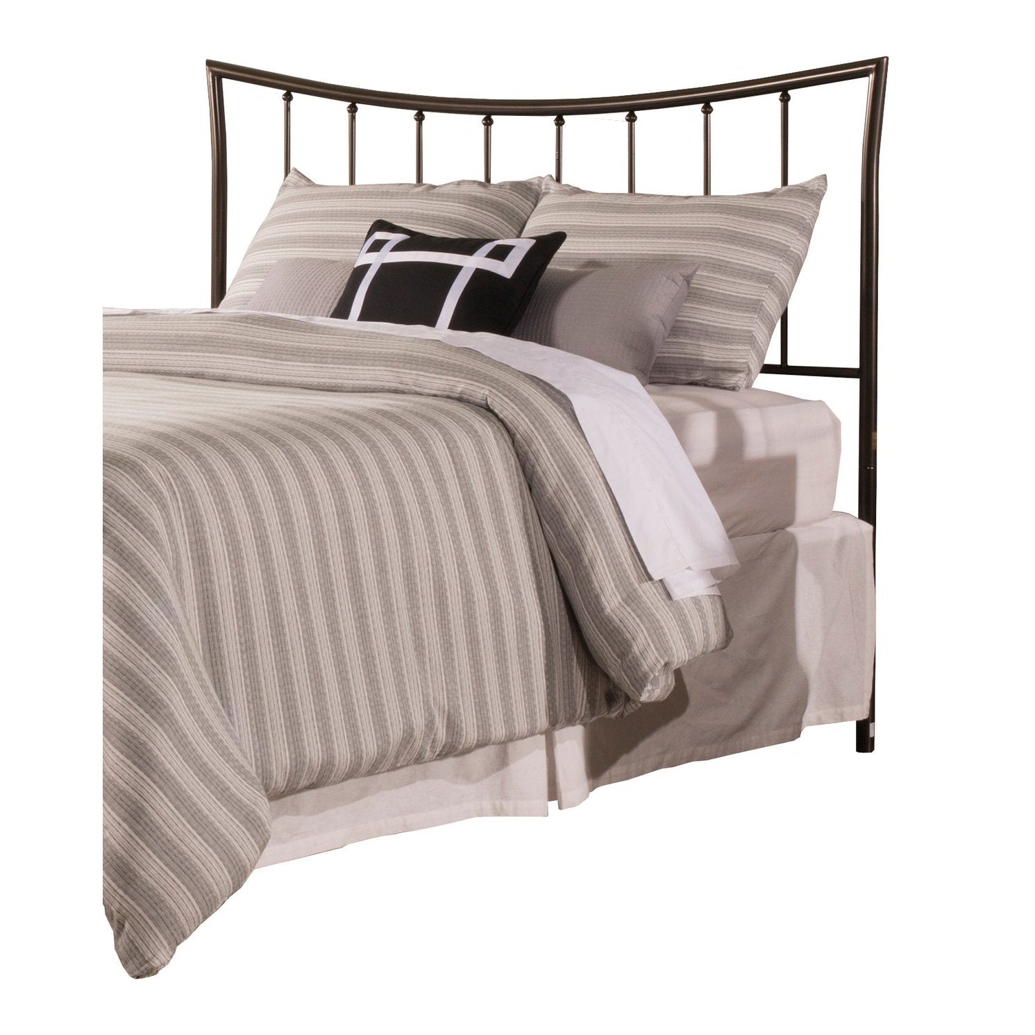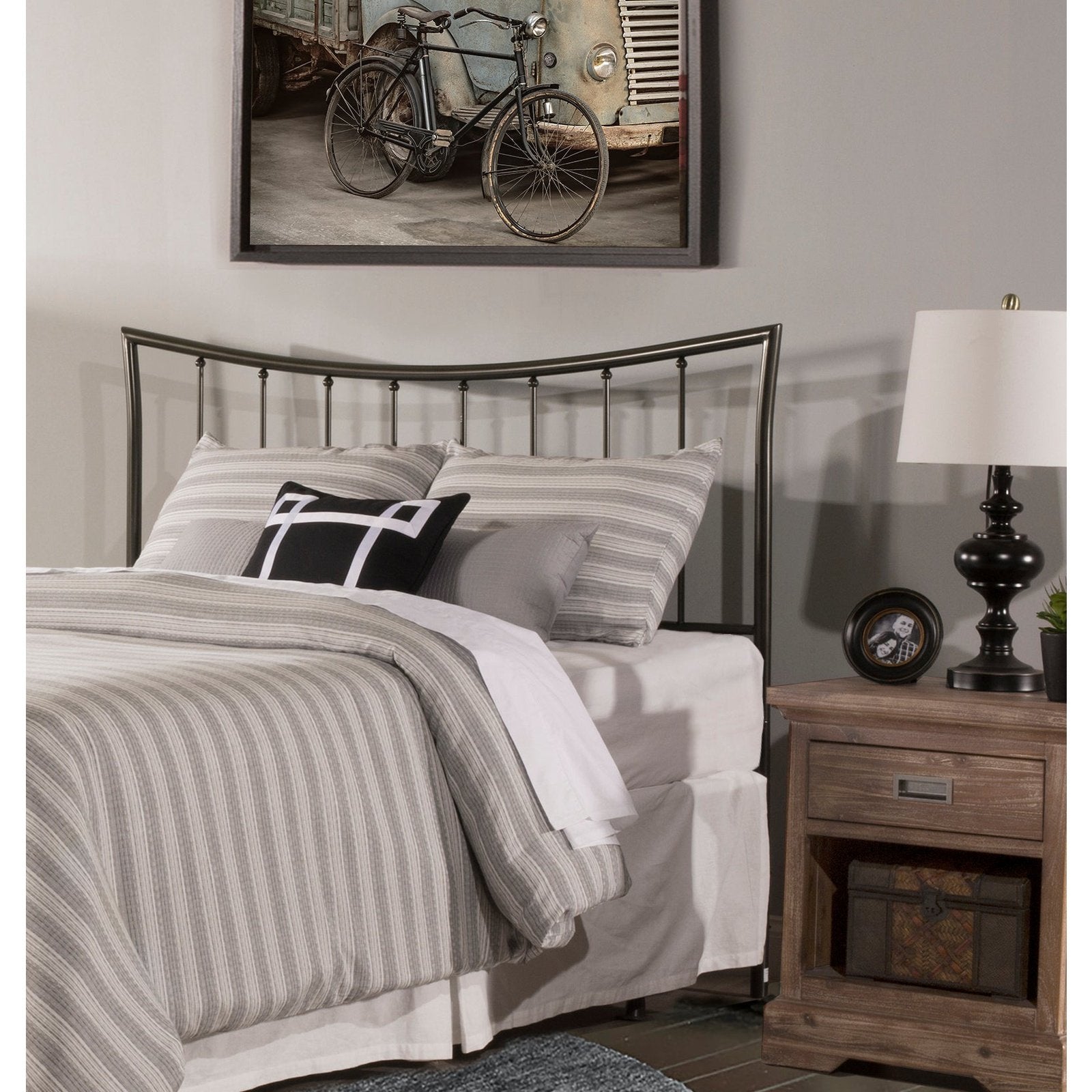 The Hillsdale Furniture Edgewood Headboard features a simple design and sleek style. Slender spindles with subtle castings support a concave top rail, while the legs bow slightly outward near the top creating 45° angles with the top rail and adding visual interest. This Full/Queen Headboard features a Magnesium Pewter finish that is perfect with any color scheme. Includes headboard and bed frame. Box spring and mattress required; not included. Assembly required.